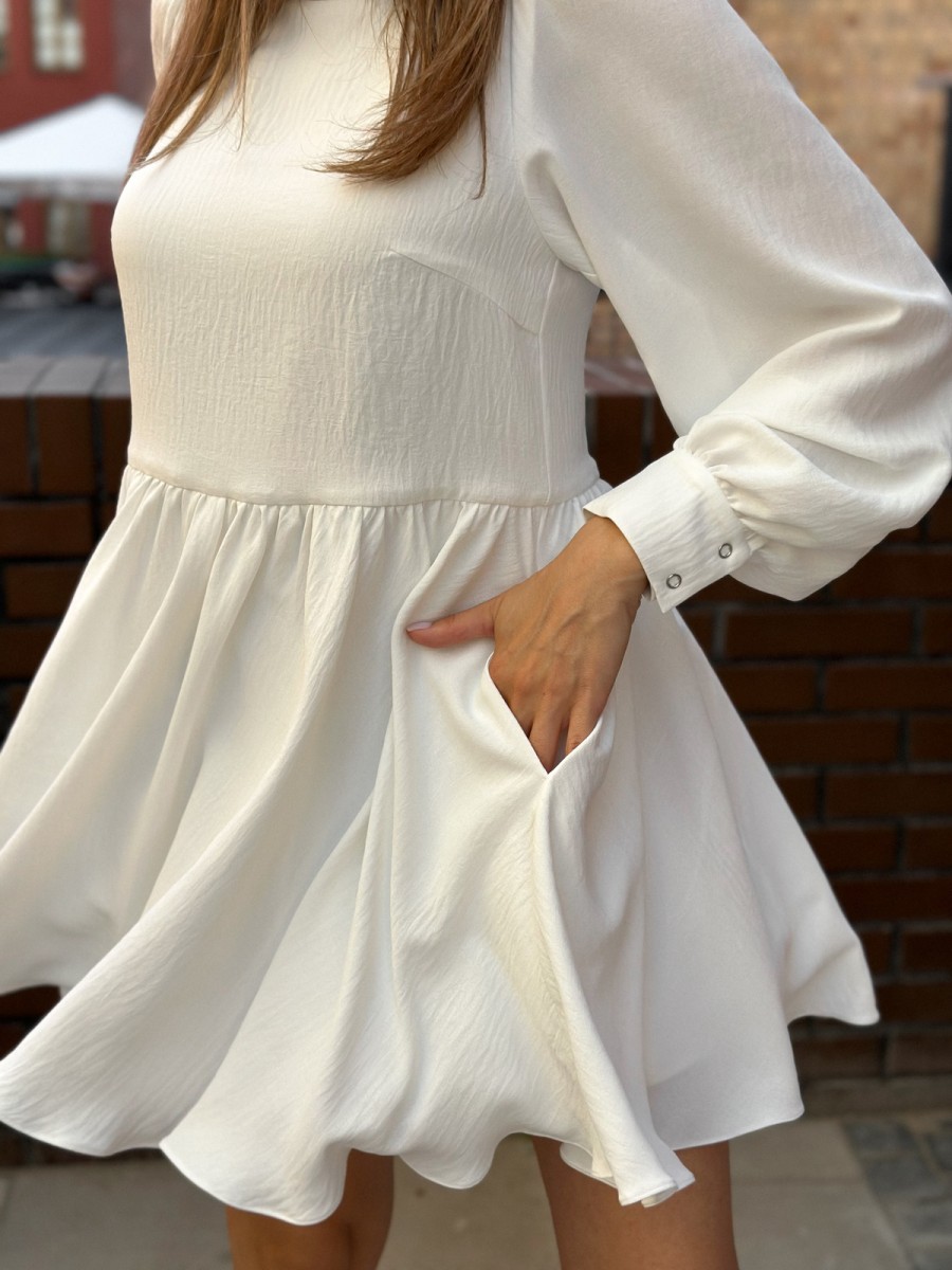 Карманы в боковых швах. Застегивается сзади на потайную молнию. Рукав втачной,